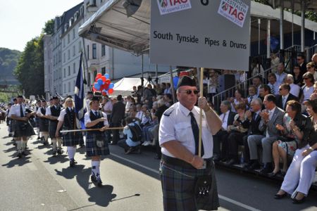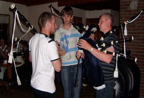 | die South Tynside Pipes & Drums Spieler waren bei der Harmonika-Band zu Gast |